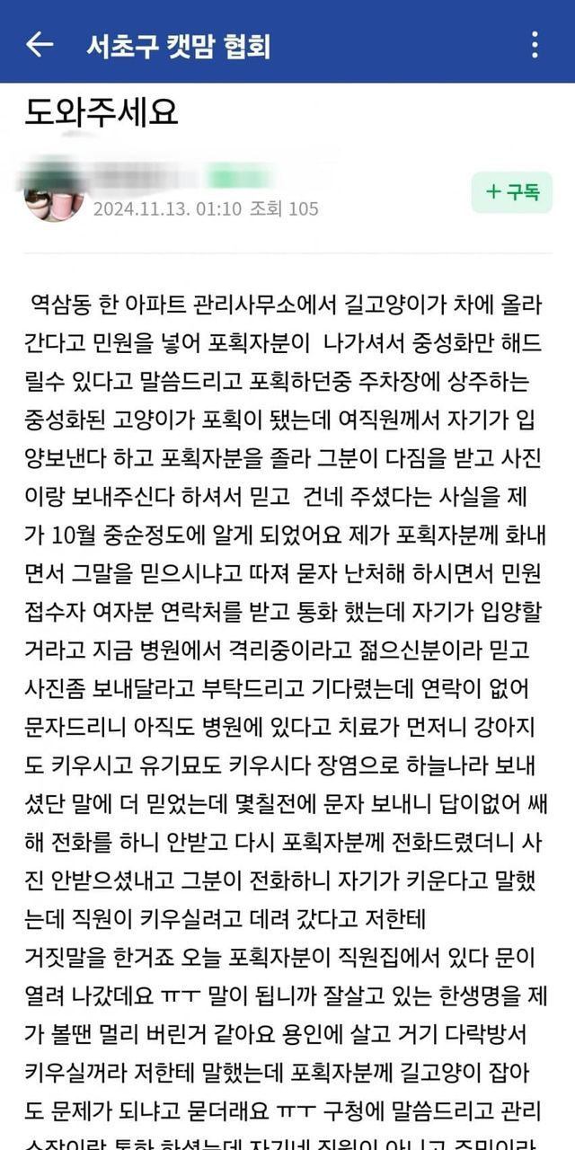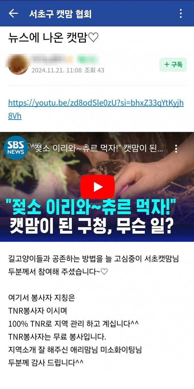 직원 압박 및 민원 테러 조장하는 서초구 캣맘들의 패악질