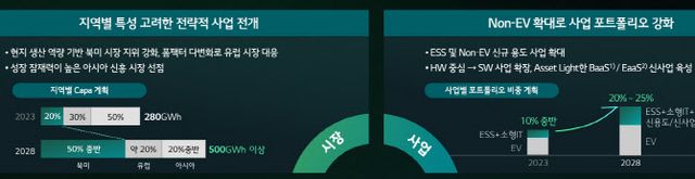 동시에 비배터리 사업을 확대해 매출 비중을 10% 중반대에서 20~25%대로 확대, 신사업 발굴과 전고체·반도체 전지 개발 등 차세대 배터리 기술 개발을 통해 새로운 성장 동력을 마련하겠다고 밝혔다.