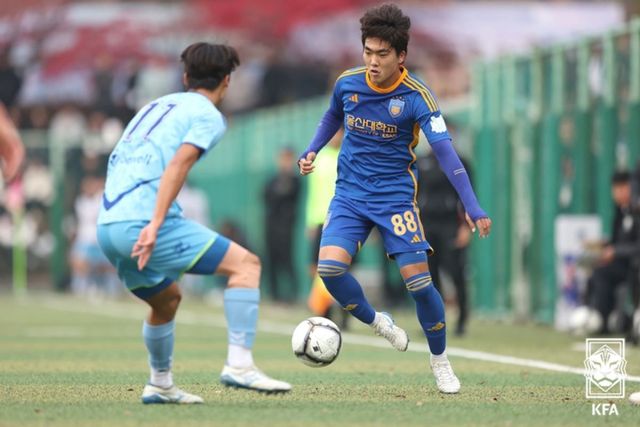 돌파를 시도하고 있는 울산대 박혜성의 모습. / 대한축구협회 제공