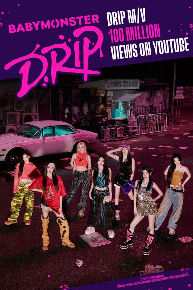 [이데일리 스타in 윤기백 기자] 그룹 베이비몬스터의 정규 1집 타이틀곡 ‘드립’(DRIP) 뮤직비디오가 글로벌 팬들의 사랑에 힘입어 유튜브에서 1억뷰를 돌파했다.