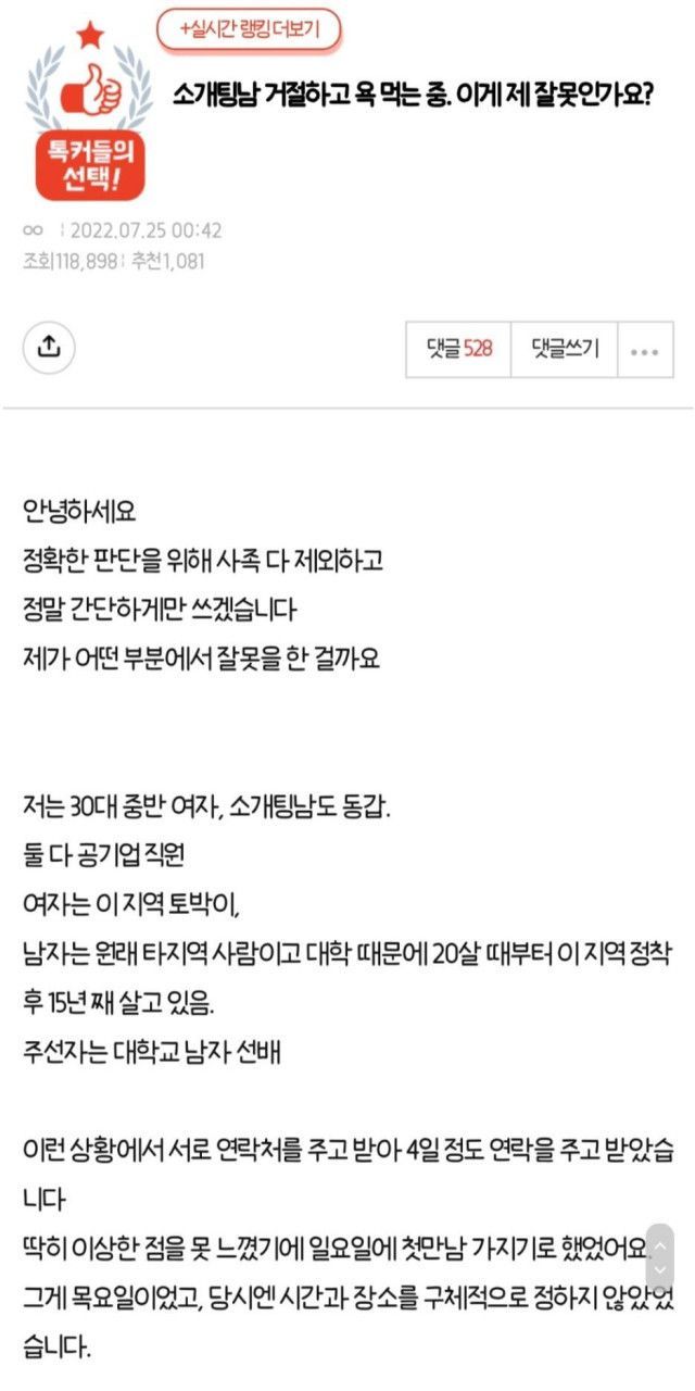 소개팅남 거절하고 욕 먹는 중..