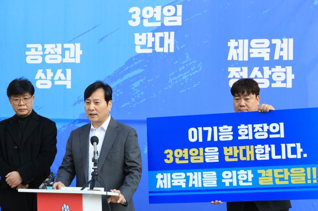 이날 기자회견에서 박 전 회장은 "이기흥 회장은 공정하지 못한 행정 절차와 측근 인사 임명에 대한 문제 지적이 끊이지 않는다"며 "체육회 스포츠공정위원회의 3연임 승인은 체육인의 마지막 기대마저 무너뜨렸다"고 지적했다.
