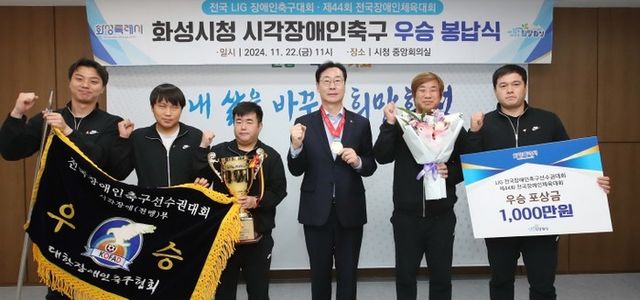 화성시 시각장애인 축구팀은 뛰어난 경기력과 팀워크를 바탕으로 2024년 시각장애인축구리그 5개 대회에서 우승을 석권하며, 장애를 극복하고 불가능에 도전한 팀으로 주목받고 있다.