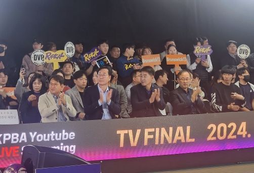 [와이뉴스] 정명근 화성시장이 22일 화성 마인드볼링센터에서 열린 ‘브런스윅 프로볼링대회’ 결승전을 참관해 화성시민과 함께하는 팀MK글로리아를 격려했다.