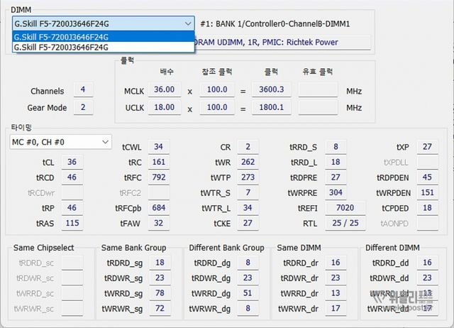 램 타이밍/전압: CL36-46-46 / 1.4V