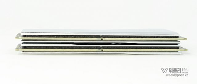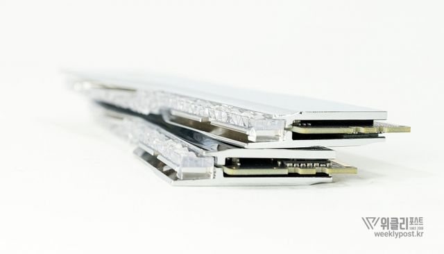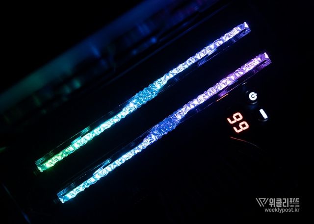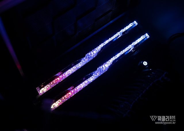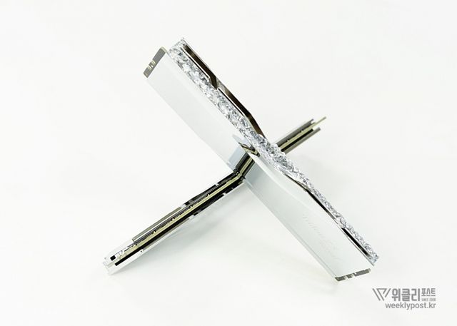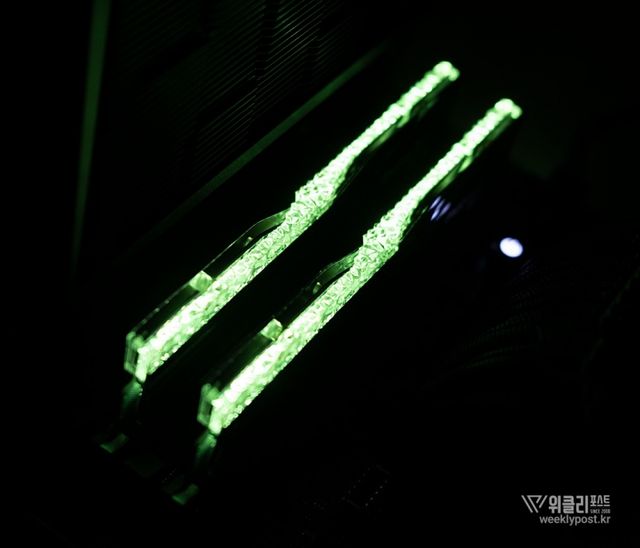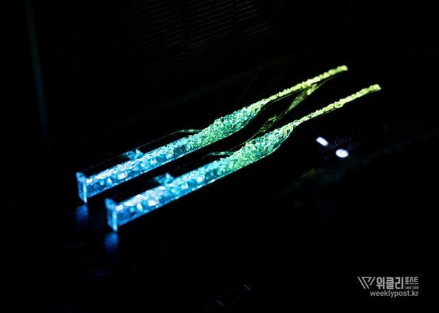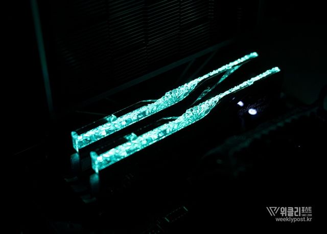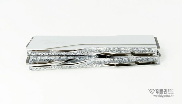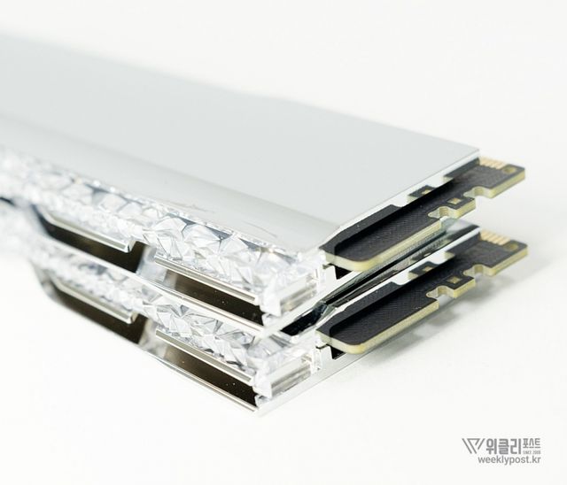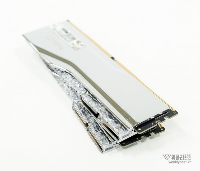 은빛으로 반사되는 알루미늄 히트싱크와 크리스털 LED 바를 통해 은은하게 퍼지는 조각난 빛은 찬란하게 빛나는 귀금속을 연상시킨다. 아름다움으로만 치면 따라올 PC 하드웨어가 거의 없다. 귀금속을 볼 때 들었던 설렘이 메모리에서 느껴질 것이라곤 생각도 못 했다.