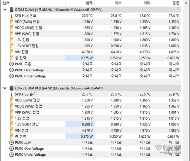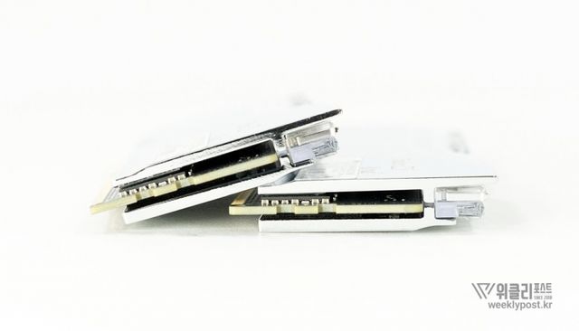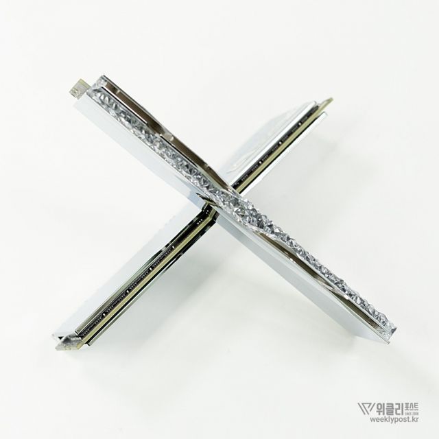 또한, PMIC 내장을 통해 효율적인 전력 관리와 안정적인 성능을 보장한다. 메인보드가 통합 전력 관리를 하는 것에서 벗어나 메모리 PMIC가 개별 전력 관리를 해 대역폭당 전력 소비를 20% 개선했다. 이는 전력 효율성과 안정성으로 이어진다. 알루미늄 히트싱크와 고품질 써멀패드로 열을 빠르게 제거하는 것도 큰 역할을 한다.