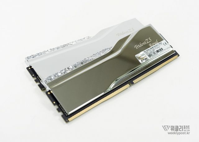 G.SKILL DDR5-7200 CL36 TRIDENT Z5 ROYAL 실버 패키지 (48GB(24Gx2))(트라이던트 Z 로얄 실버, 이하 TRIDENT Z5 ROYAL 실버)는 그 명성에 부응하듯 아주 멋진 디자인을 갖췄다. 지난 세대 플랫폼인 DDR4에서 처음 선보였던 디자인을 계승했는데, 이를 단순한 재탕이라 말할 수 없다. 이유는 너무나 아름답기 때문이다.