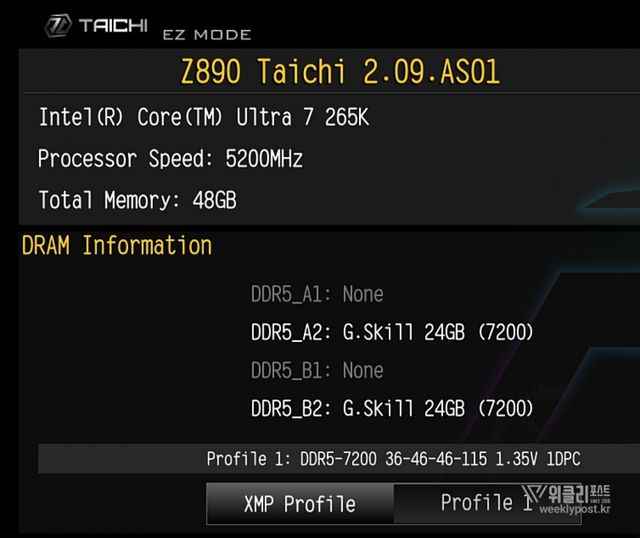 ▲ 애즈락(ASRock) Z890 Taichi BIOS에서 확인한 XMP 3.0 프로필 정보