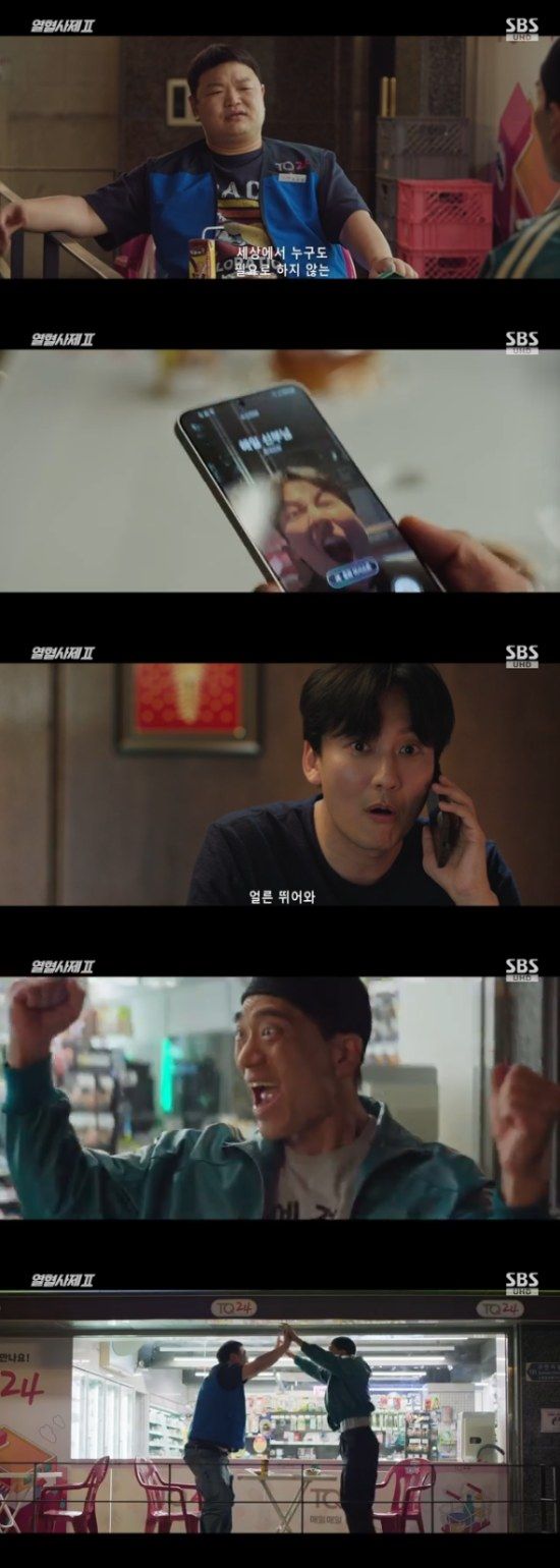 그 때 쏭삭의 전화기가 울렸고, 김해일이었다. 쏭삭은 전화기를 테이블에 툭 던지면서 전화를 받지 않으려고 했지만, 오요한은 "빨리 받어!"라고 태도를 바꿨다.