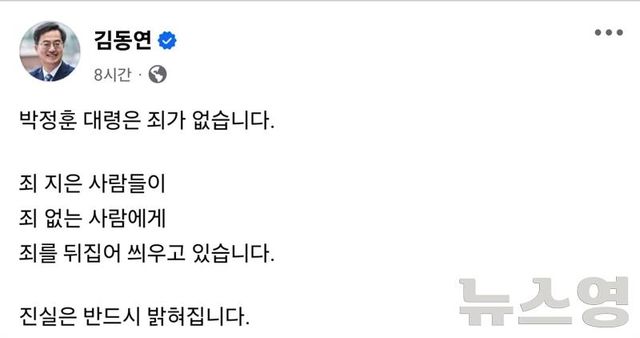 그러면서 "죄 지은 사람들이 죄 없는 사람에게 죄를 뒤집어 씌우고 있다"고 강조했다.