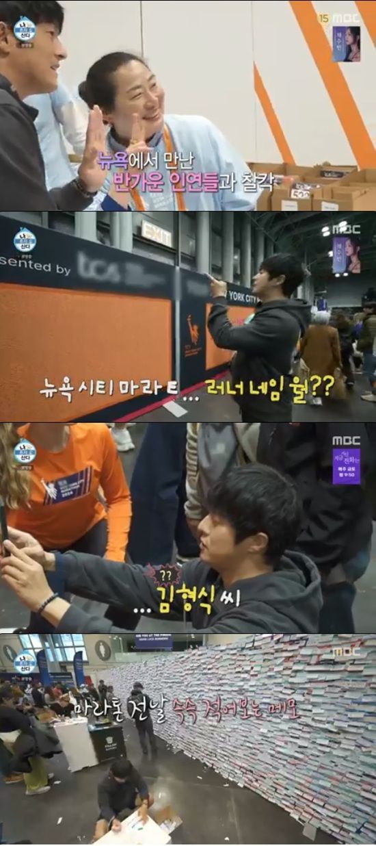 기안84는 대회의상까지 받은 뒤 마라톤 참가자들 이름이 새겨진 주황색 벽에서 이름을 찾았다.