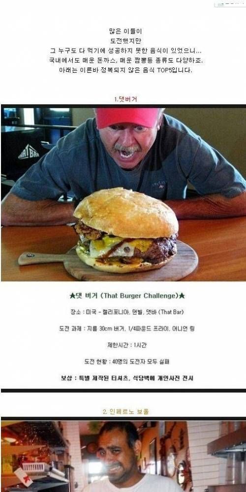그 누구도 다 먹지못한 음식 TOP 5,,
