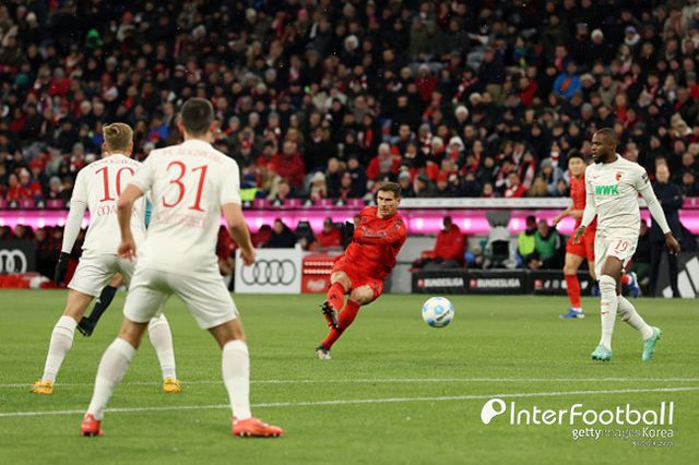 경기 초반부터 뮌헨이 아우크스부르크 골문을 두드렸다. 전반 11분 고레츠카의 오른발 슈팅이 무산됐다. 전반 12분엔 코망이 무시알라의 패스를 슈팅으로 연결했지만 득점이 되지 않았다. 전반 17분엔 키미히의 슈팅이 높았다.