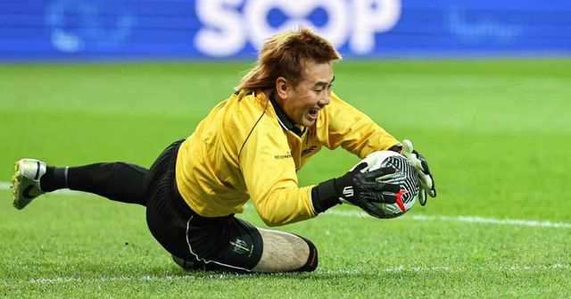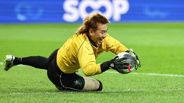 서울 마포구 서울월드컵경기장에서 열린 '2024 넥슨 아이콘매치' FC 스피어와 실드 유나이티드의 경기, FC 스피어 골키퍼 김병지가 실드 유나이티드 마스체라노의 슛을 선방하고 있다. / 뉴스1