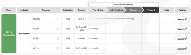 디앤디파마텍은 지난해 4월 회사의 경구용 GLP-1 비만치료제인 DD02S와 DD03(경구용 삼중작용제) 등 3개 제품에 대해 미국의 멧세라와 총액 약 5900억원(42억2500만 달러)의 기술이전 계약을 체결한 바 있다.