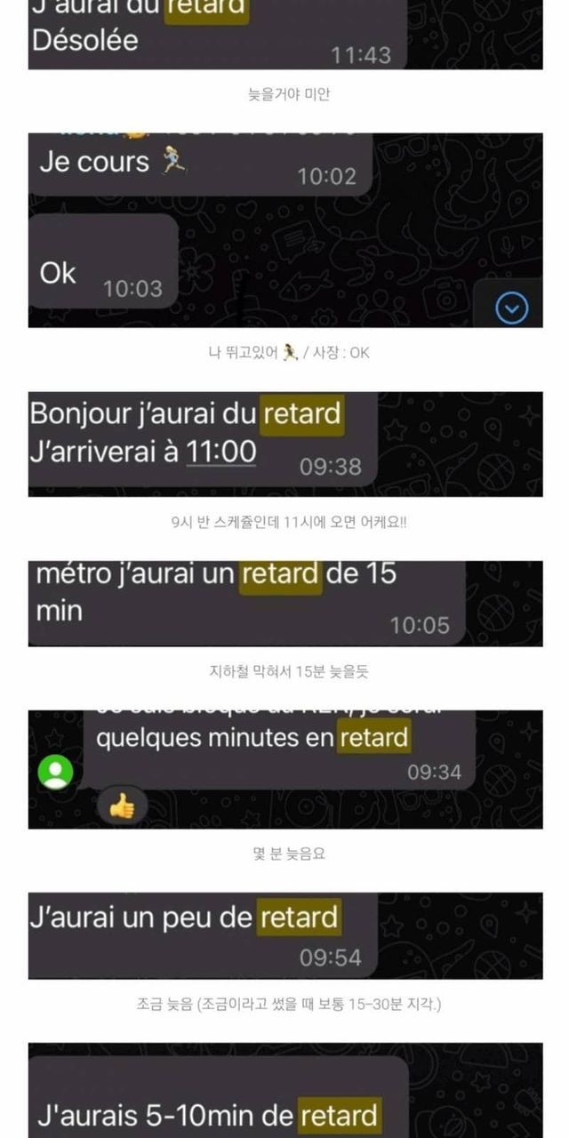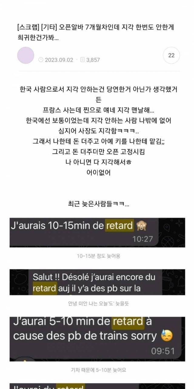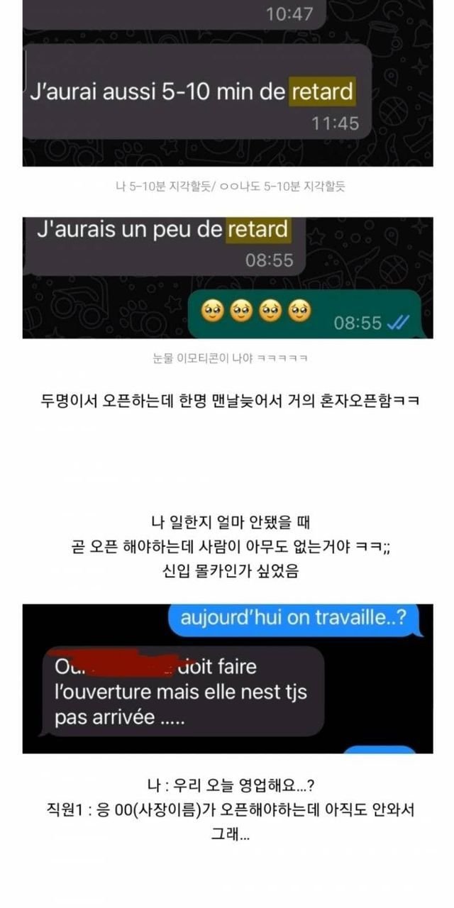 지각 안하는게 드물다는 프랑스 알바들 ㅋㅋㅋ