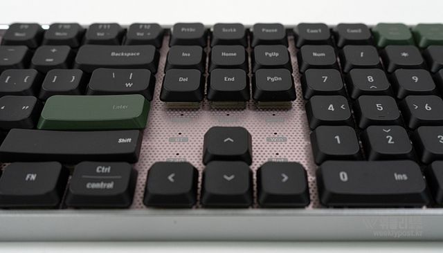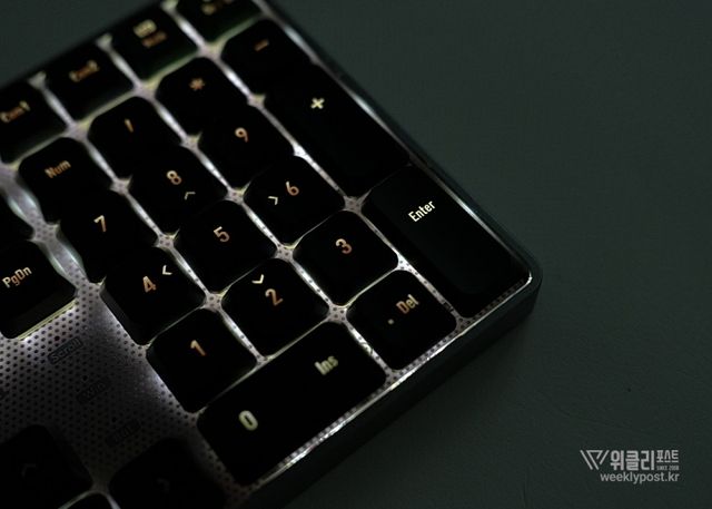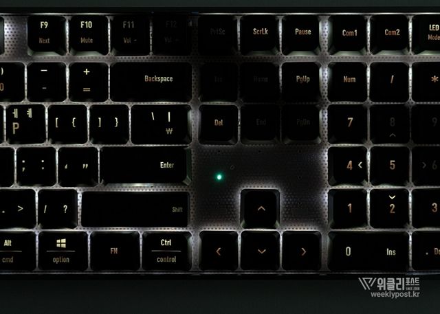 키보드의 작동 상태를 직관적으로 알려주는 인디케이터 부분도 그렇다. 작은 LED를 이용해 명확하게 인식되며, 깔끔하고 고급스럽게 마무리되었다. 방향키 상단에 인디케이터를 집중적으로 배치해 상태를 더욱 직관적으로 확인할 수 있도록 한 것도 긍정적인 요소다.
