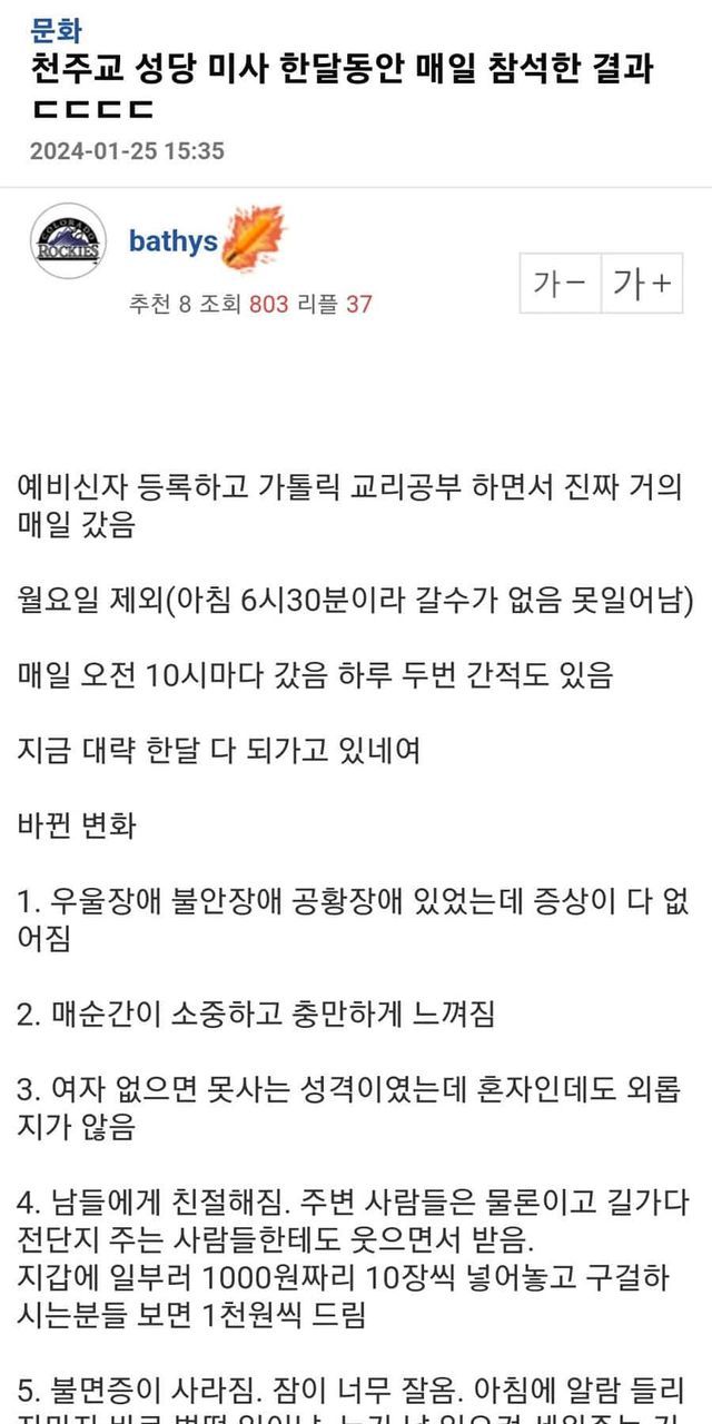 천주교 성당 미사 한달동안 매일 참석한 결과