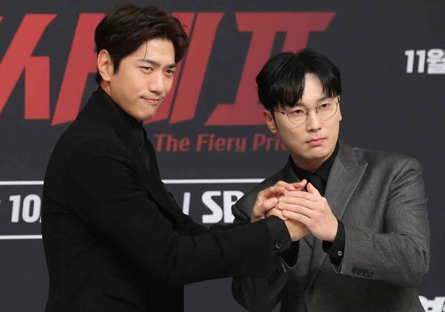 배우 성준과 서현우(오른쪽)가 8일 서울 양천구 SBS에서 진행된 SBS 새 금토드라마 '열혈사제2' 제작발표회에서 포즈를 취하고 있다. / 뉴스1