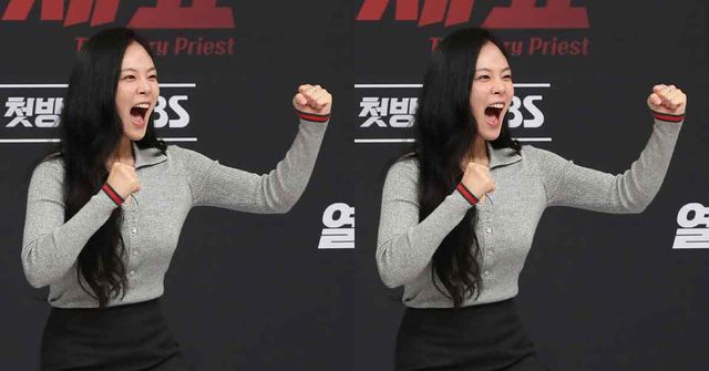 배우 겸 가수 김형서가 8일 서울 양천구 SBS에서 진행된 SBS 새 금토드라마 '열혈사제2' 제작발표회에서 포즈를 취하고 있다. '열혈사제2'는 낮에는 사제, 밤에는 벨라또의 역할을 위해 천사파 보스로 활약하는 분노 조절 장애 열혈 신부 김해일(김남길 분)이 부산으로 떠 국내 최고 마약 카르텔과 한판 뜨는 노빠꾸 공조 수사극이다. / 뉴스1