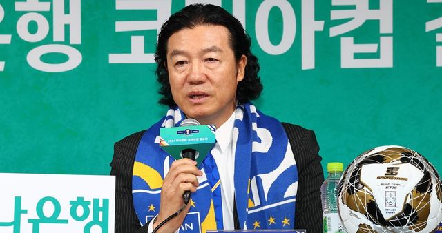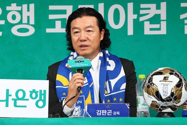 지난 21일 오전 서울 종로구 축구회관에서 열린 2024 코리아컵 결승전 미디어데이 행사에서 김판곤 감독이 포부를 밝히고 있다. / 연합뉴스