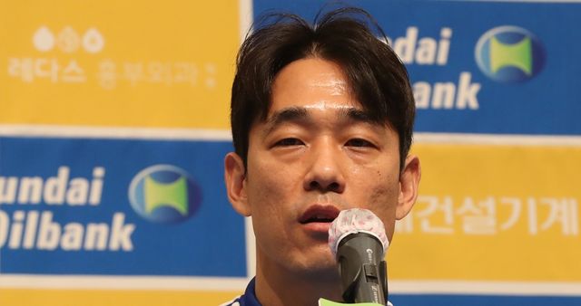 박주영이 2022년 1월 19일 오전 경남 거제시 장평동 거제삼성호텔에서 열린 '울산현대축구단 2022시즌 동계 전지훈련 공식 미디어데이'에서 발언하고 있다. / 연합뉴스