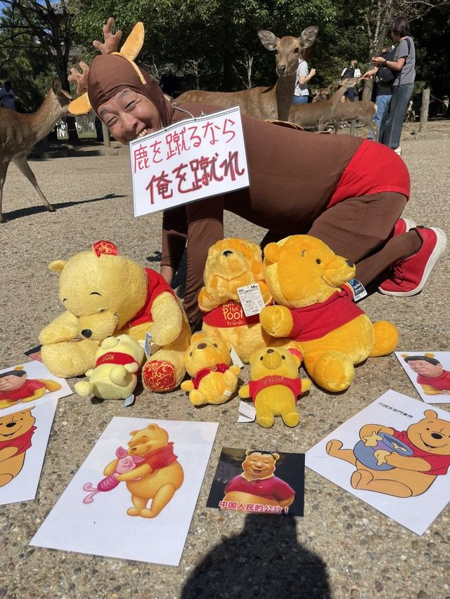 사슴을 찬 중국 관광객들에 대한 항의로