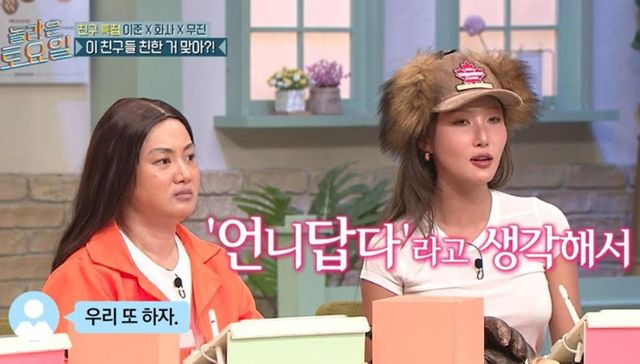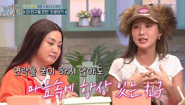 그때 당황스럽지 않았냐는 질문에 화사는 “아니다. 오히려 그 문자를 보고 엄청 웃었다. ‘언니답다’는 생각이 들더라. ‘언제든지 좋다’고 답했다”라고 말해 여전히 끈끈한 우정을 드러냈다.