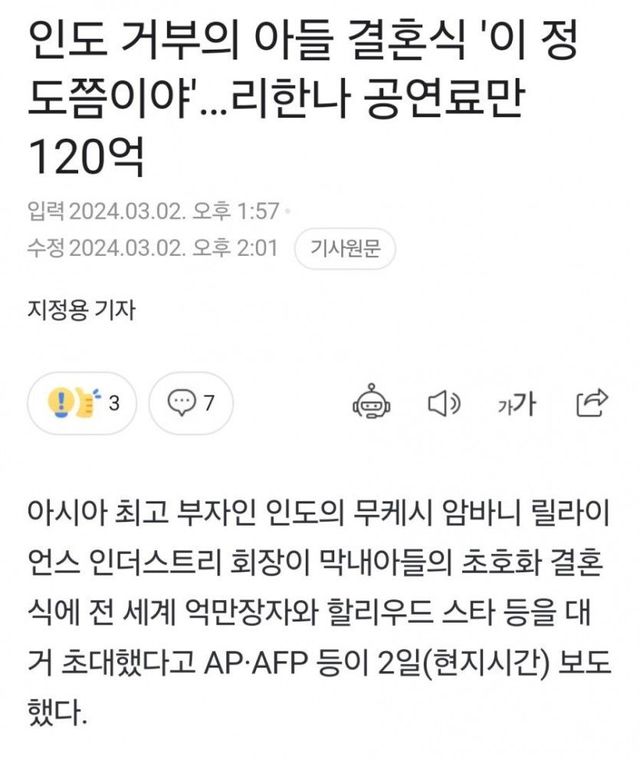 아시아 최대재벌 아들 공연에 120억받고 공연함