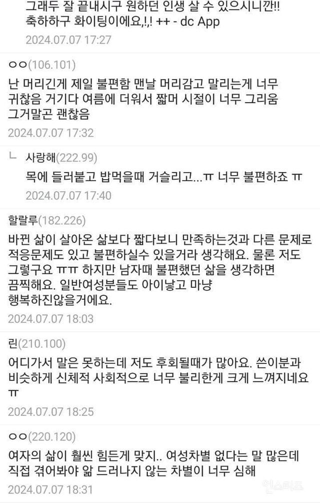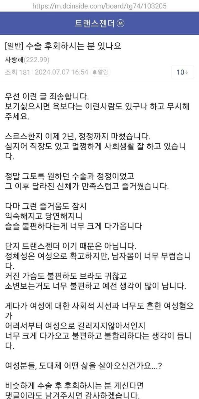성전환 수술한 트랜스젠더들이 울면서 예전으로 돌아가고 싶다는 이유