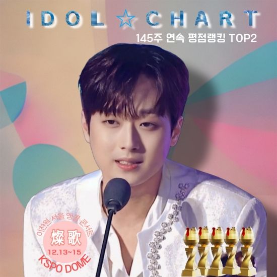 (엑스포츠뉴스 이정범 기자) '찬또배기' 이찬원이 11월 3주 차 아이돌차트 평점 랭킹 2위에 올랐다.
