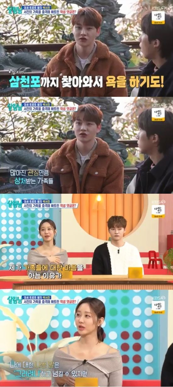 한그루는 박서진이 일반인인 가족들의 방송 출연으로 높아진 관심만큼 악플도 많아진 것을 걱정하자 공감한다는 얘기를 했다.