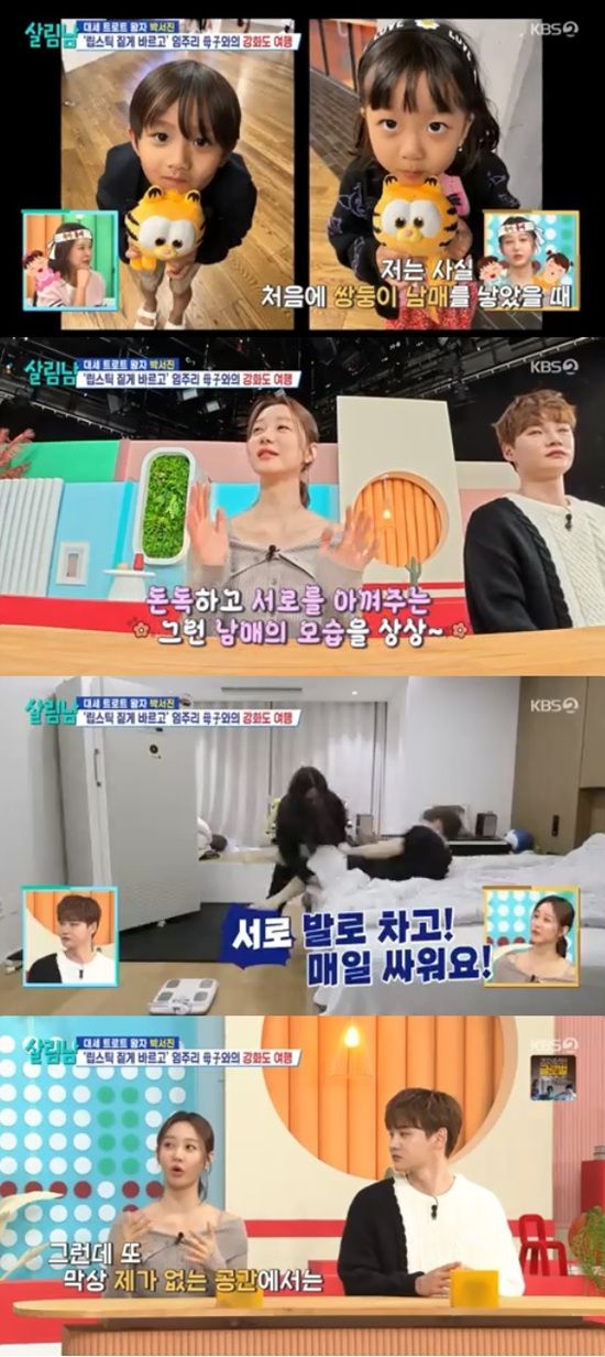 한그루는 쌍둥이 남매를 낳은 뒤 서로 챙겨주는 돈독한 남매의 모습을 상상했었다고 했다. 하지만 자신의 예상과 달리 쌍둥이 남매가 서로 발로 차면서 너무 싸우고 있다고.