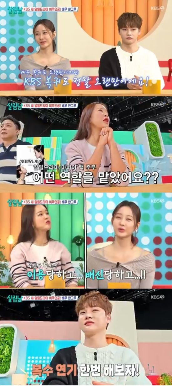 '싱글맘' 한그루는 8살 쌍둥이 남매를 혼자 키우고 있다면서 복귀를 할 때는 걱정했지만 일보다 육아가 더 힘든 탓에 촬영장에 가는 게 즐거워졌다고 했다.