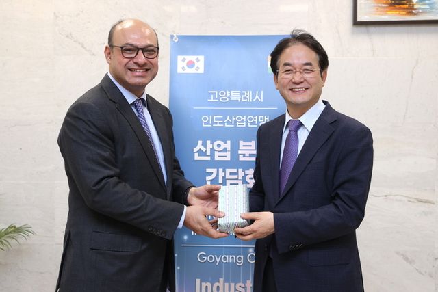 고양특례시-인도산업연맹 간담회(시브 싯단트 카울 인도산업연맹 한국위원회 의장(왼쪽),이동환 고양특례시장(오른쪽) |