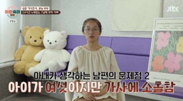 무직 상태에서도 남편은 먹기만하고 청소조차 하지 않는 모습을 보였는데, 진태현은 "사람사는 집에 곰이 한마리 있는것같다"고 말했고, 서장훈은 "미안한데 본능대로 사는거냐"고 황당함을 드러냈습니다.