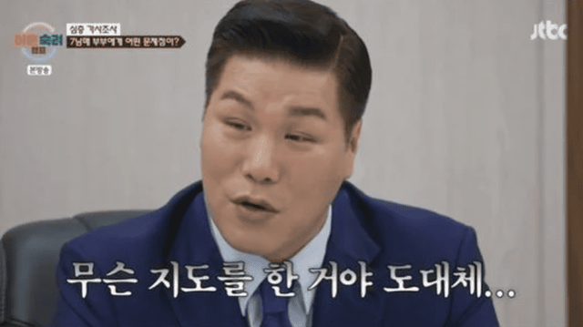 집안일에 대해서는 "주말 한정으로 조금씩 도와준다"고 말했지만, 서장훈은 "미안한데 주말 한정은 월요일부터 금요일까지 출근하는 사람이나 주말 한정으로 도와주는거지 그자리에 계속 누워있었는데 왜주말한정으로 도와주는거냐. 계속 공휴일인데 갑자기 뭔 주말한정으로 도와주는거냐"고 황당함을 드러냈습니다.