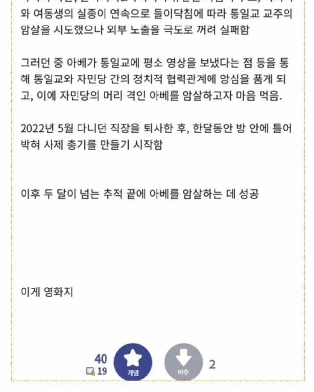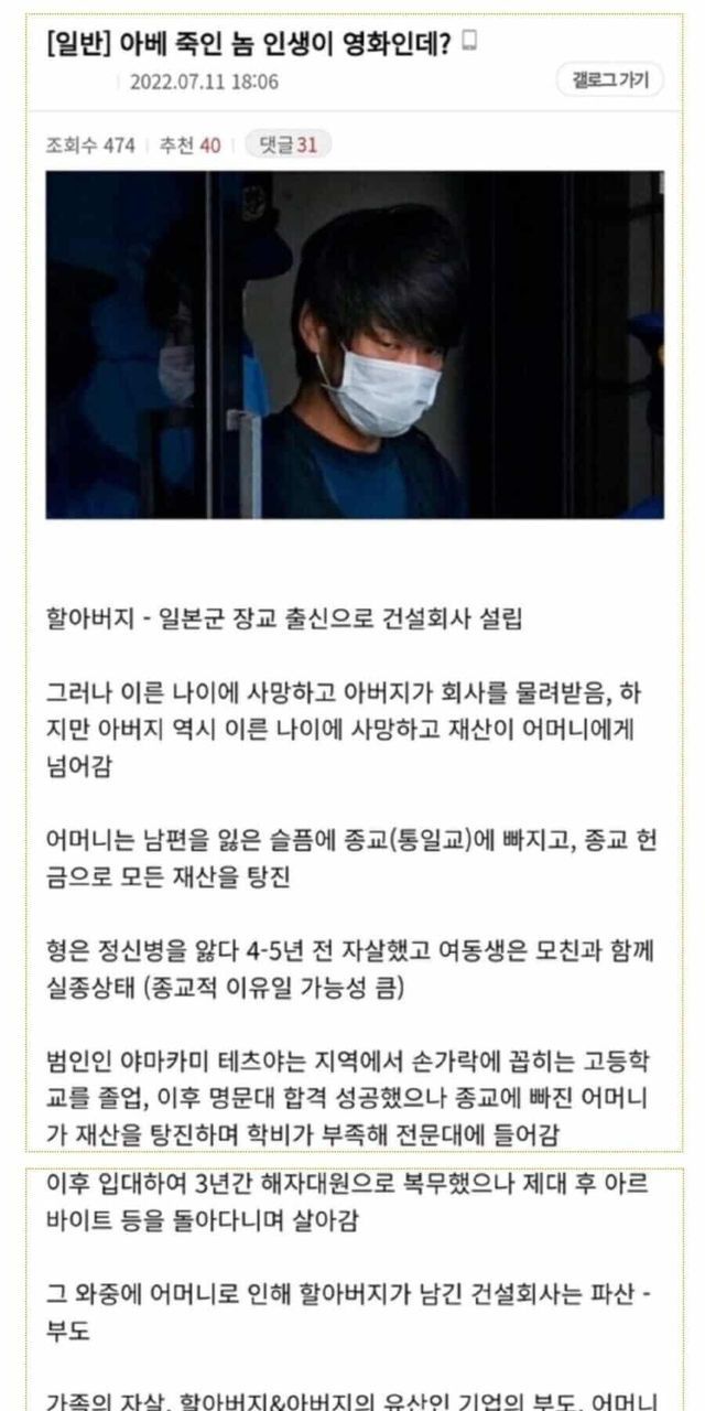 정말 영화같은 아베 신조 피살 사건의 가해자의 삶