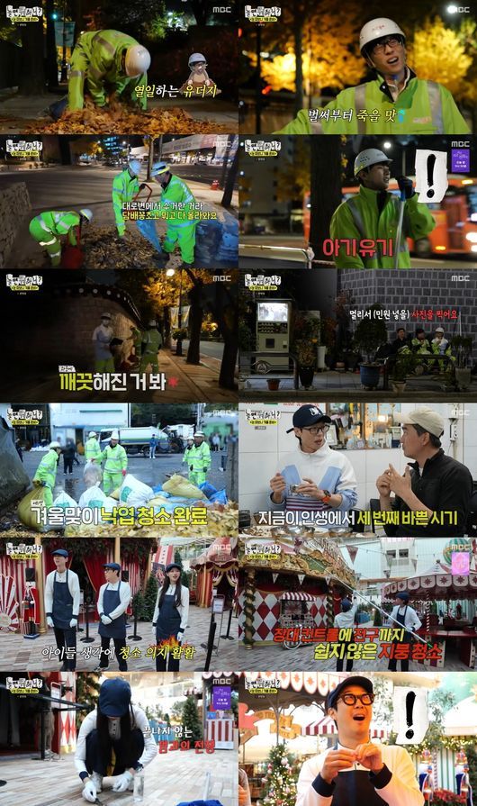 23일 방송된 MBC ‘놀면 뭐하니?’는 ‘눈 떠보니 겨울 준비’ 편으로 꾸며졌다. 유재석, 박진주, 이이경, 그리고 ‘쓰레기 아저씨(쓰저씨)’ 김석훈은 환경공무관으로 변신해 낙엽 청소를, 하하, 주우재, 미주는 백화점 크리스마스 테마파크 오픈 준비 청소를 하며 겨울을 맞이했다.