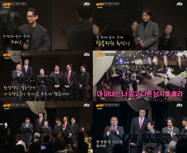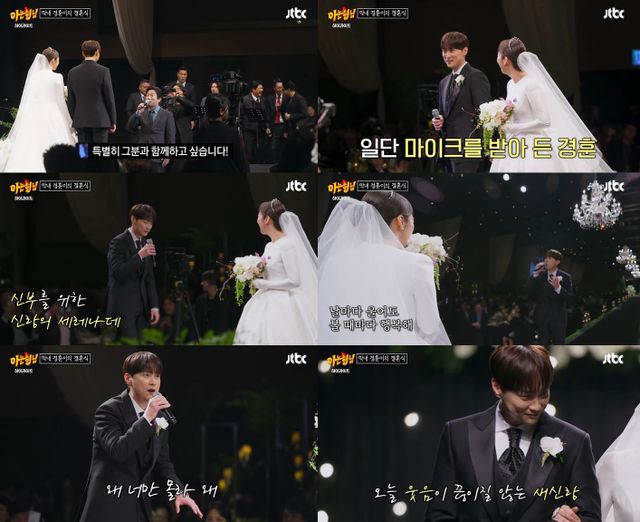 이수근은 노래가 끝나기 전 신랑 민경훈에게 직접 '사랑의 세레나데'를 불러달라고 마이크를 넘겼고, 민경훈은 곧장 아내만을 향한 노래를 불러 감탄을 안겼다.