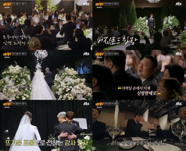 대망의 결혼식 당일 오마이걸, 에스파 등 화려한 축전 영상이 공개됐다. 강호동, 서장훈 등은 민경훈의 결혼하는 모습을 보며 눈물을 흘려 보는 이들을 뭉클하게 만들었다.