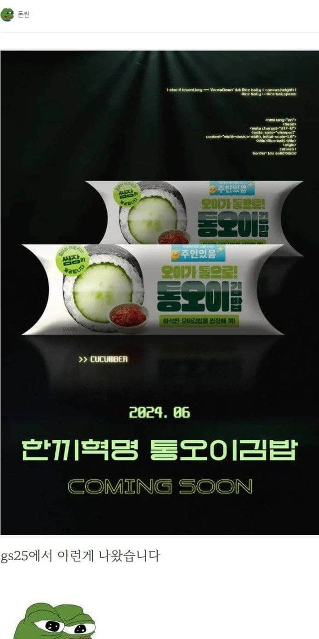 GS25 통오이 김밥이랑 평냉육수 ㅎㄱ 뜸