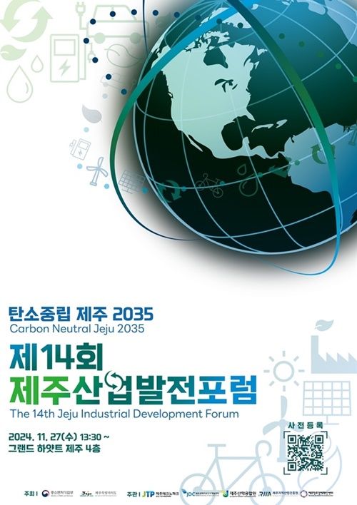 24일 제주TP에 따르면 이번 제14회 제주산업발전포럼은 오는 27일 오후 1시 30분 그랜드 하얏트 제주에서 '에너지 대전환, 탄소중립 제주 2035'를 주제로 유관기관 및 산학연관 관계자 등 300여 명이 참석한 가운데 열린다. JTP 기업지원단에서 추진해온 제주지역 성장사다리 지원사업 성과물도 함께 전시된다.
