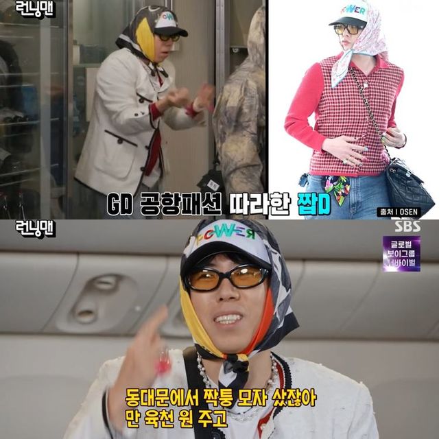 24일 방송된 SBS 예능 프로그램 ‘런닝맨’은 공항 콘셉트로 꾸며졌다. 이날 멤버들은 각자 개성 넘치는 공한 패션을 자랑, 그중에서도 양세찬은 지드래곤 공항 패션을 재현해 웃음을 자아냈다.