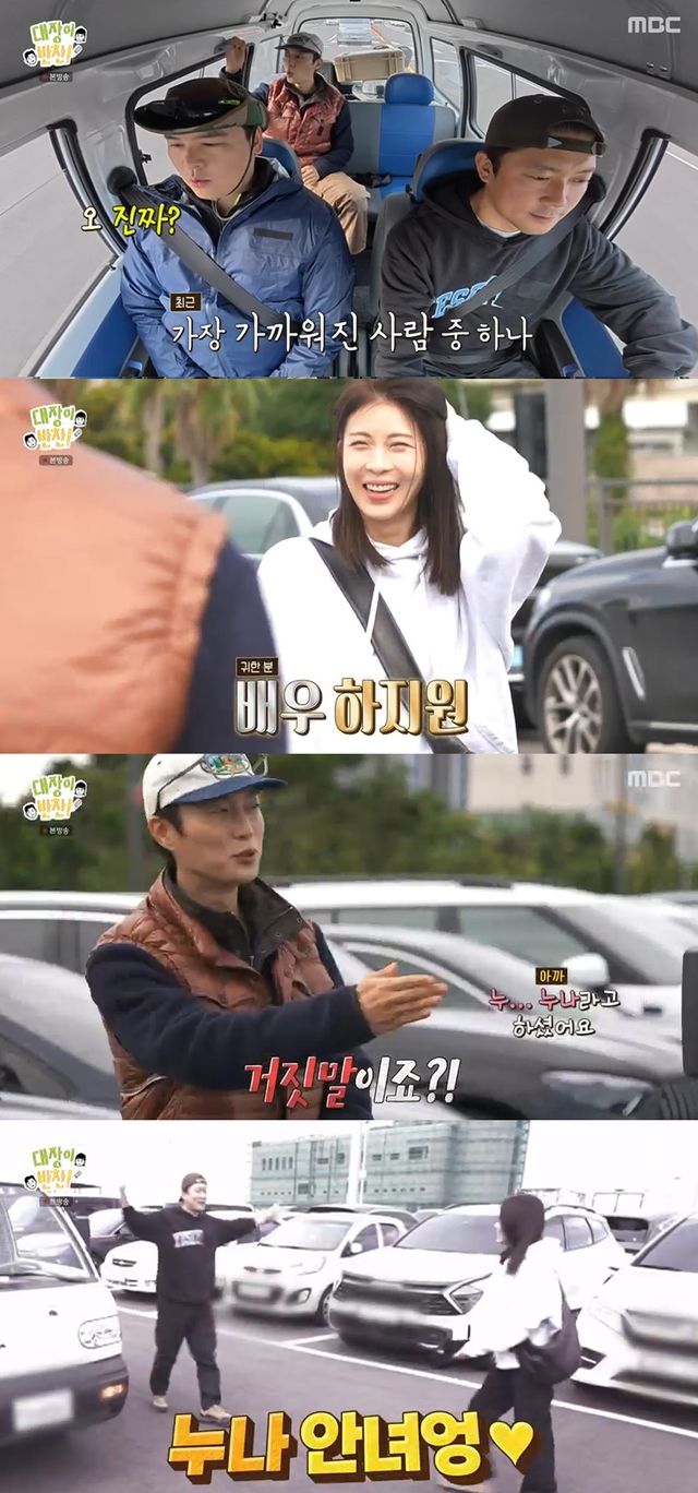 게스트의 정체는 배우 하지원. 김대호는 "누나 안녕"이라며 하지원과 따뜻한 포옹을 나눴다.
