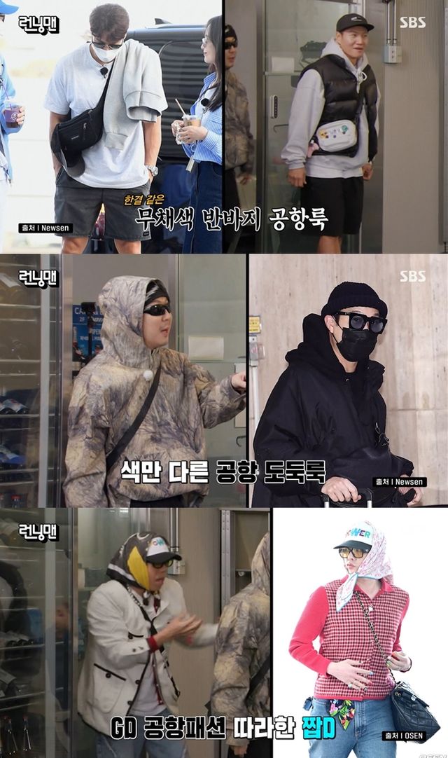 무채색 반바지 공항룩을 선보인 김종국, 공항 도둑룩을 선보인 하하 다음으로 지드래곤 패션을 따라한 양세찬이 등장해 눈길을 끌었다.