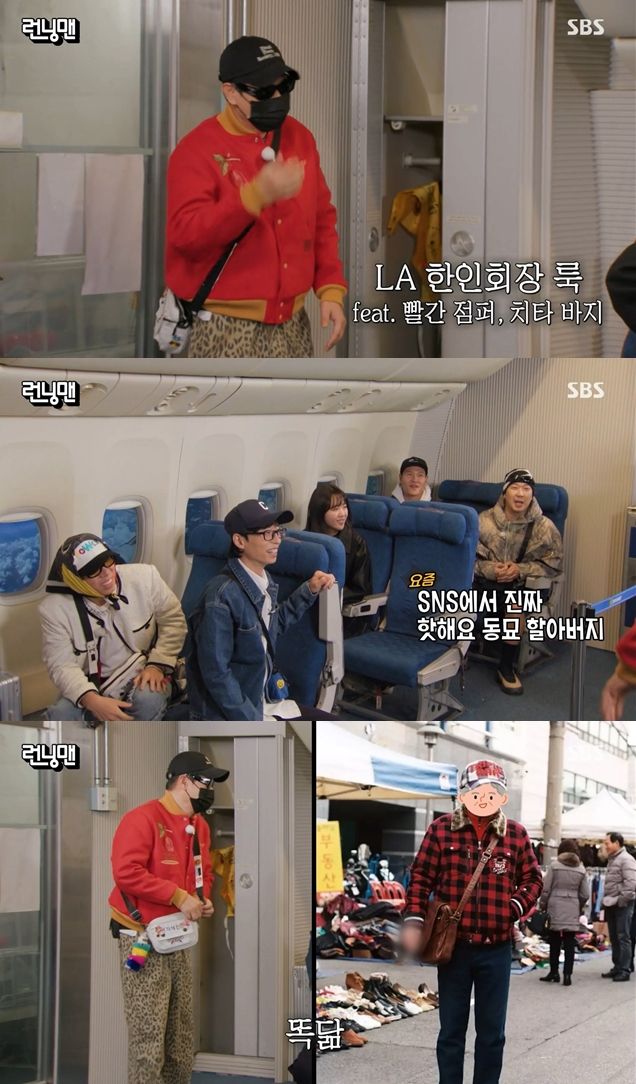 마지막으로 송지효와 지석진이 등장했고, 유재석은 지석진의 패션을 "LA 한인 회장룩"이라며 연신 웃음을 감추지 못했다.