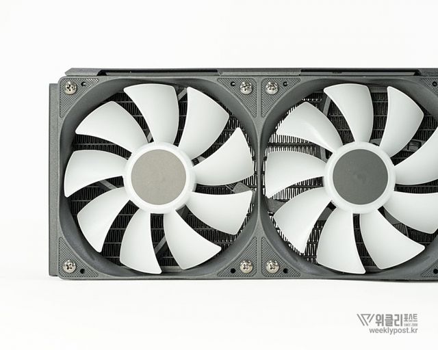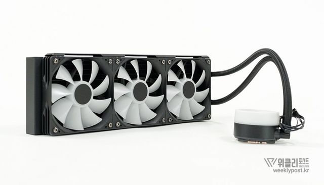 최근 트렌드에 맞게 블랙과 화이트 컬러를 선택할 수 있다. 라디에이터, 쿨링팬, 튜빙과 워터블럭까지 모두 동일한 색상으로 처리되므로 일체감이 매우 높다. 알루미늄 재질의 라디에이터 역시 꽤나 꼼꼼한 마감으로 가격대에 비해 높은 만족감을 줄 것으로 예상되는 부분이다.