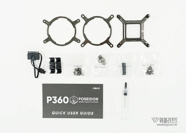 P360 포세이돈은 저렴한 가성비 위주의 제품임에도 써멀컴파운드까지 쿨러의 설치에 필요한 모든 액세러리를 제공한다. 수냉쿨러라 해서 무언가 더 준비할 필요 없이 P360 하나만으로 모든 설치를 끝낼 수 있다는 의미.